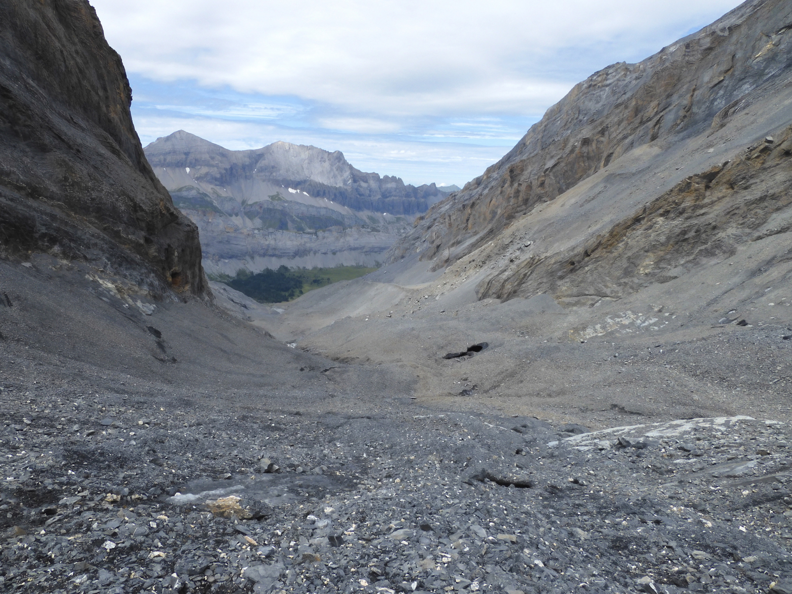 Man betritt den schuttbedeckten Schwarzgletscher und steigt über diesen unter den abschliessenden Steilhang unter dem Zackenpass (P. 3036, tiefste Einsattelung). Man steigt über den östlichen (linken) Teil des Steilhanges hinauf zum Grat, den man nordöstlich vom Zackenpass erreicht. Ist der Hang schneefrei, trifft man unten auf teils schuttbedeckte Platten, im oberen Teil auf deutliche Wegspuren. So erreicht man den Zackengrat.