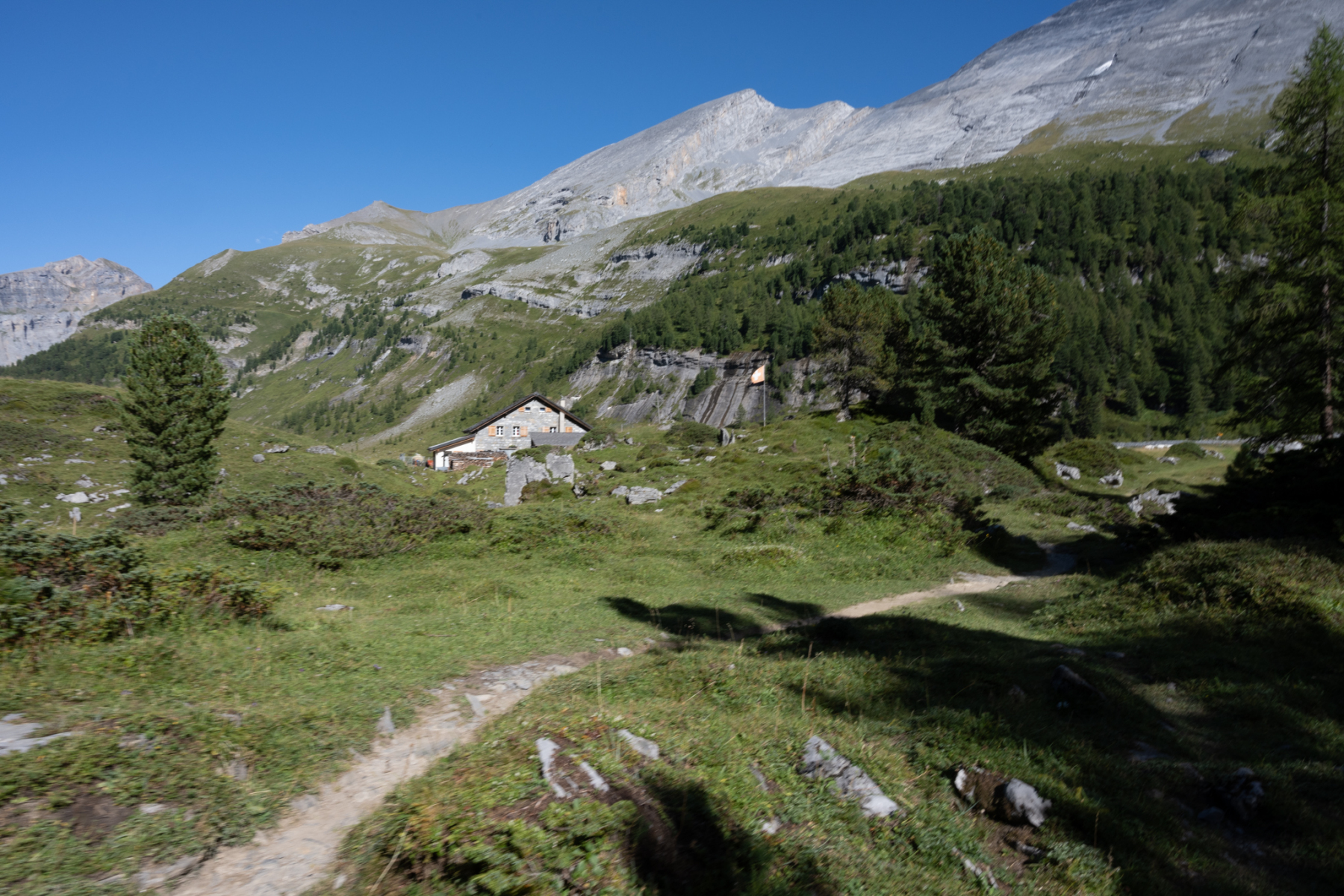 Von der Seilbahn Sunnbühl nimmt man den rechten Wanderweg, der unterhlab des èschenegrats entlang führt. So gelangt man mit einem Abstecher zum Arveseeli, wo sich eine kleine Rast lohnt. Von dort geht es hinunter zur Alp Spittelmatte und hinauf zum Schwarenbach. Das erste Tagesziel ist nach längstens eineinhalb bis zwei Stunden Marschzeit erreicht.