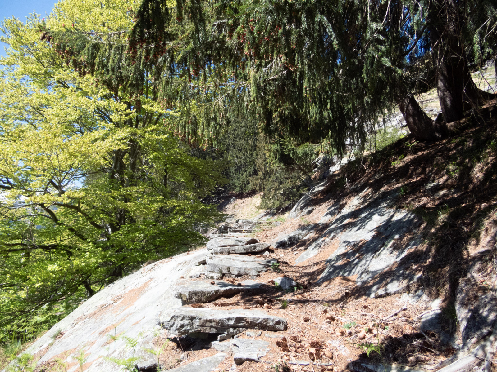 | Bemerkungen | Es ist ein spannender Bergweg, der allerdings im Frühling sehr anspruchsvoll ist, wenn im Abstieg auf der Nordseit des Pizzo Bombögn (Wyss Gufar) noch Schnee liegt. Gutes Schuhwerk und Stöcke sind von Vorteil. Trittsicherheit ist Bedingung. Die Schneefelder in den Runsen sind teilweise bis zu 40 Grad steil. Ab Ende Mai problemlos begehbar. – Verweilen im Walserdorf Bosco / gurin empfehlenswert, eventuell Besuch des Museums. – Tour mit Barbara. |