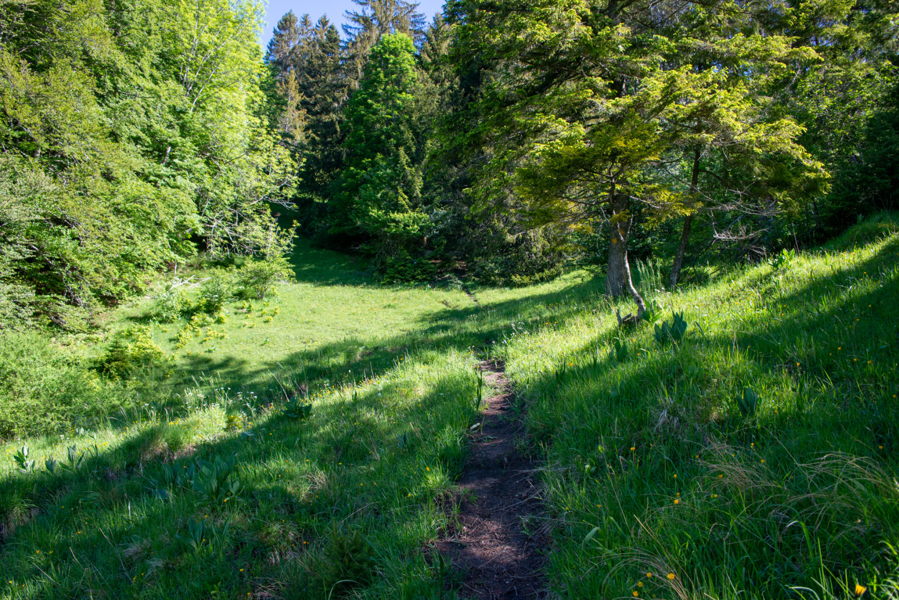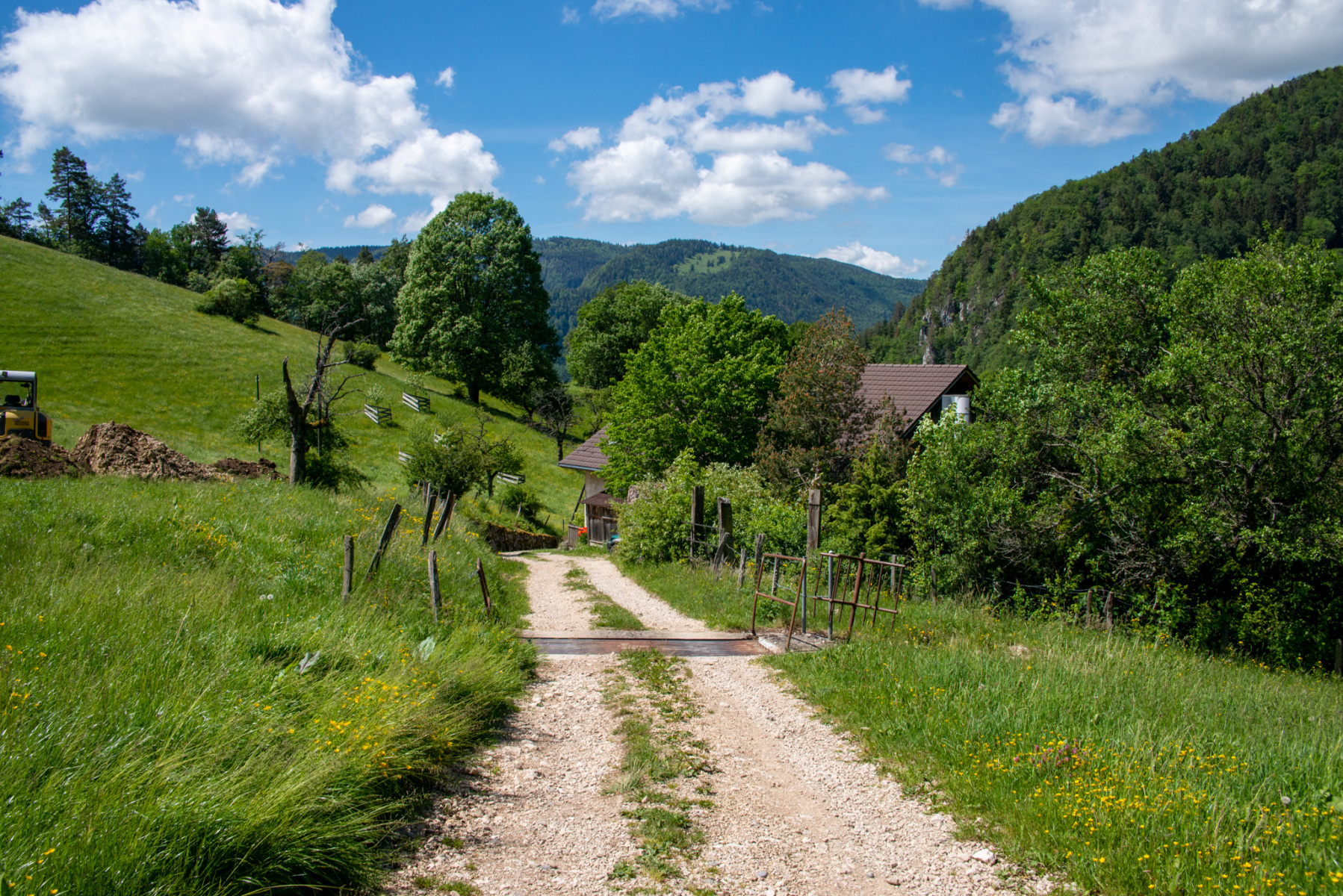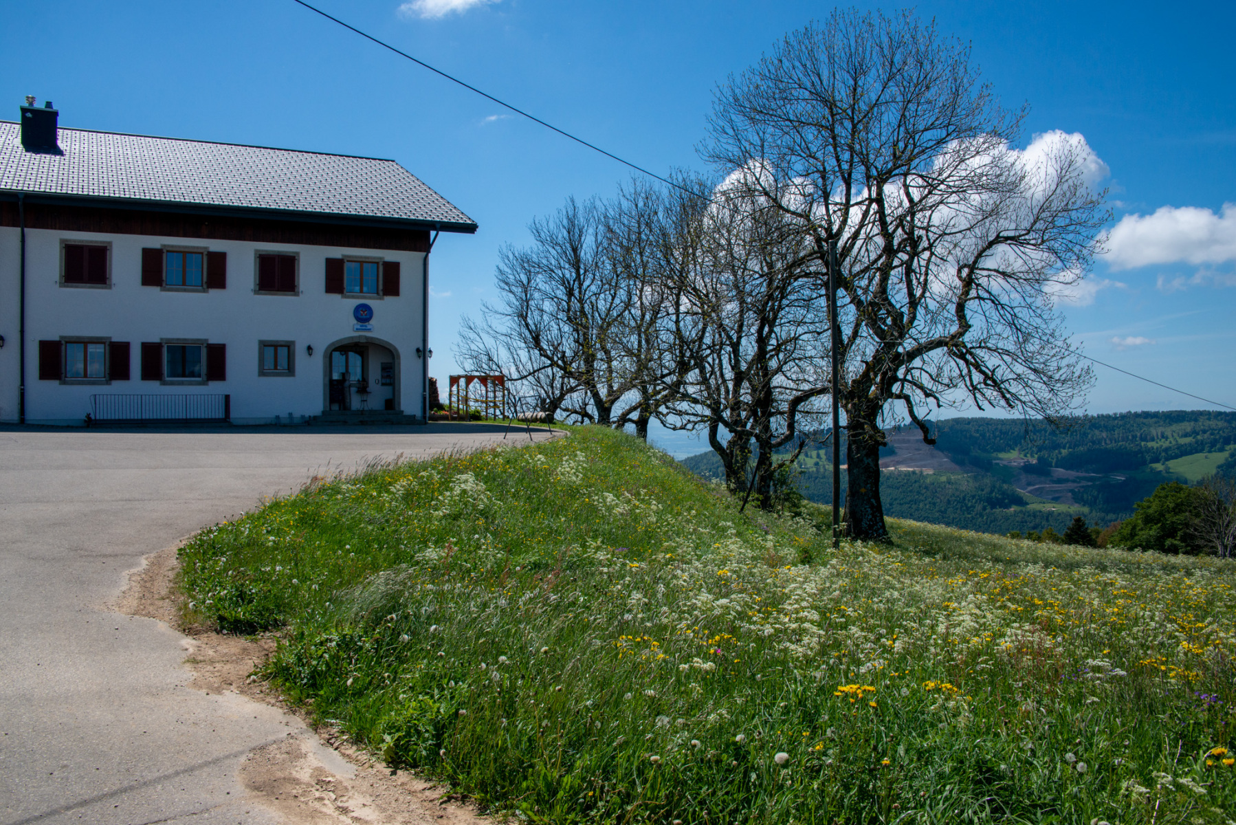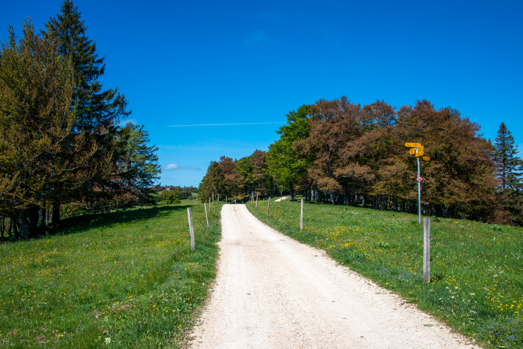 Ist die Hütte einmal erreicht, beginnt der eher flache teil der Wanderung zur Métairie de Malleray und zur Métairie de Werdtberg. Eine herrliche Hochebene, die am Ende auch den Blick zum Chasseral freigibt. Rechts von der Métairie zeigt der Weg durch die Alpwiese ab und man gelangt zu einem Wegweiser. Es lohnt sich, dem Weg links zum Wald hinunter zu folgen. Es kommt dann nochmals ein kleiner Aufstieg auf eine Felskuppe, bevor es dann zügig bergab geht Richtung Le Van und dem Skiclub La Heutte (Hütte). Durch Wiesen- und Waldwege geht es danach hinunter zum Ausgangsort nach Huette.