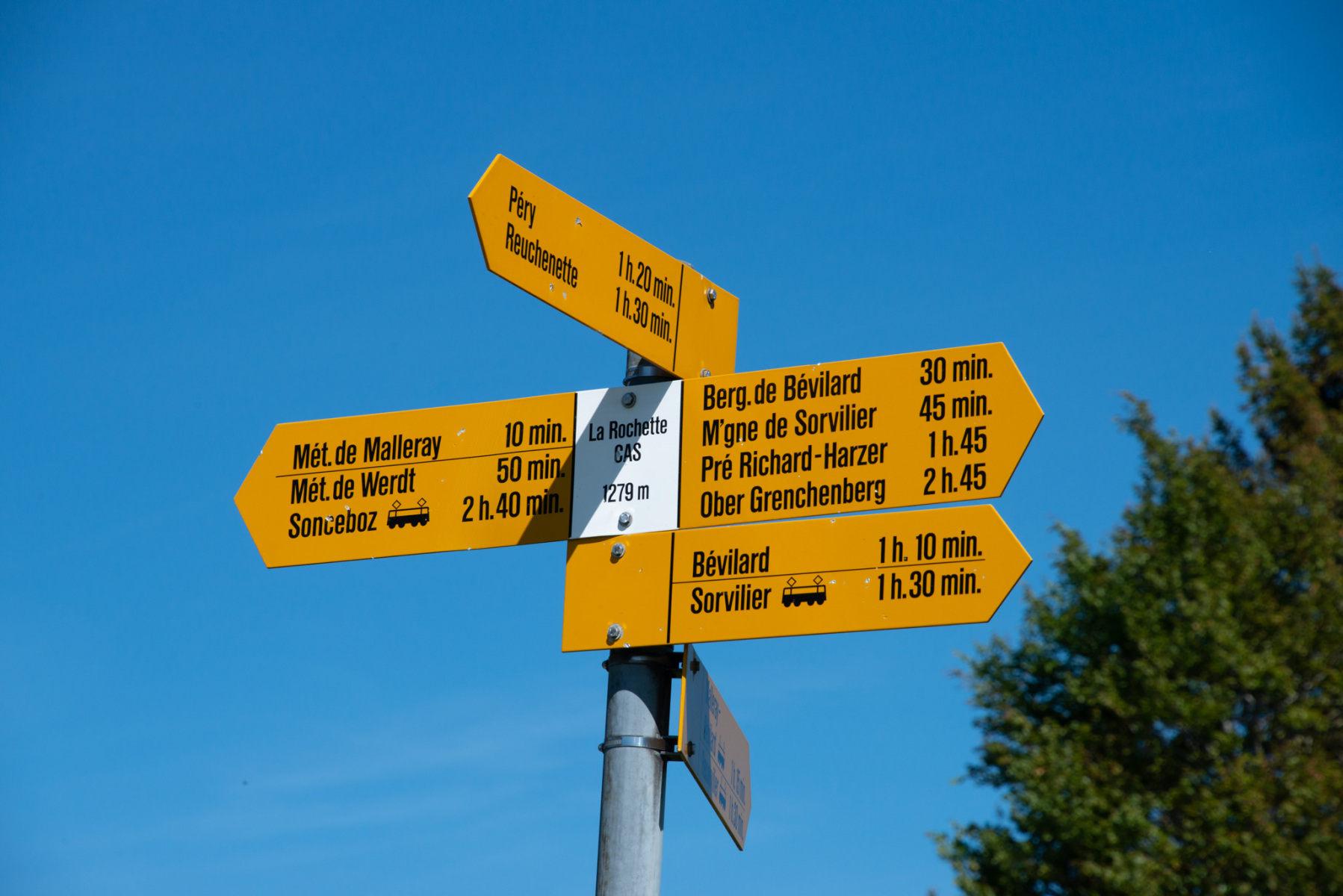 Am besten reist man mit dem Zug von Biel Richtung La Chaux-de-Fonds an und steigt in La Huette aus. Gleich beim Bahnhof ist eine Signalisation angebracht, die links haltend den Weg Richtung Péry weist. Die ersten Meter sind noch auf der Strasse zu bewältigen, bevor man rechts abbiegt und den kleinen Ort La Huette verlässt. Nach de Ort gelangt man auf eine Waldstrasse und einen sehr schön angelegten Waldweg. Nach rund 15 bis 20 Minuten gelangt man in den nächsten Ort, Péry. Diesen steift man oberhalb des Dorfes und gelangt dann, leicht ansteigend, wieder auf eine landwirtschaftliche Strasse. Gute zwei Kilometer folgt man dieser Strasse, bevor sie nach einer markanten Brücke einen Links-Knick macht. Dort gabelt sich die Strasse, man folgt dem linken Abzweiger. Schliesslich gelangt man nach La Verrière, eine Alphütte. Abwechselns durch Wiese und Wald gelangt man dann zu einem ersten Zwischenziel, der Cabanne La Rochette. Dort gilt es die ausgezeichnete Sicht auf die Berner Alpen zu geniessen, von Finsterahorn, Jungfrau Blüemlisalp bis hin zum Mont Blanc.