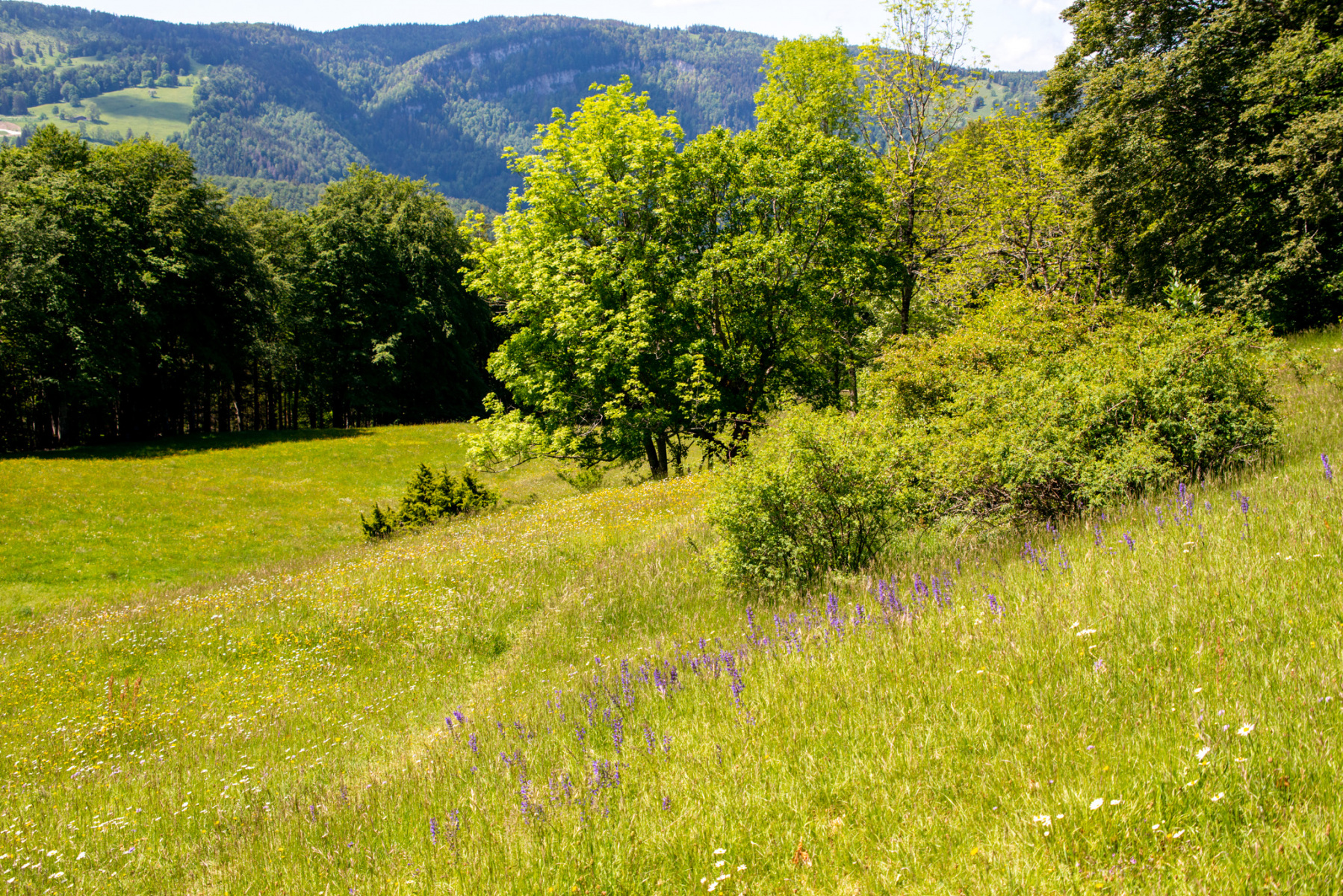 Eine wunderschöne Jurawanderung über die Cabanne der Rochette. Diese Rundtour ab La Huette (die Hütte) lässt den Blick auf die Berner Alpen schweifen. Abwechslungsreich durch Wiesen und Wälder, hat diese Tour einiges zu bieten.